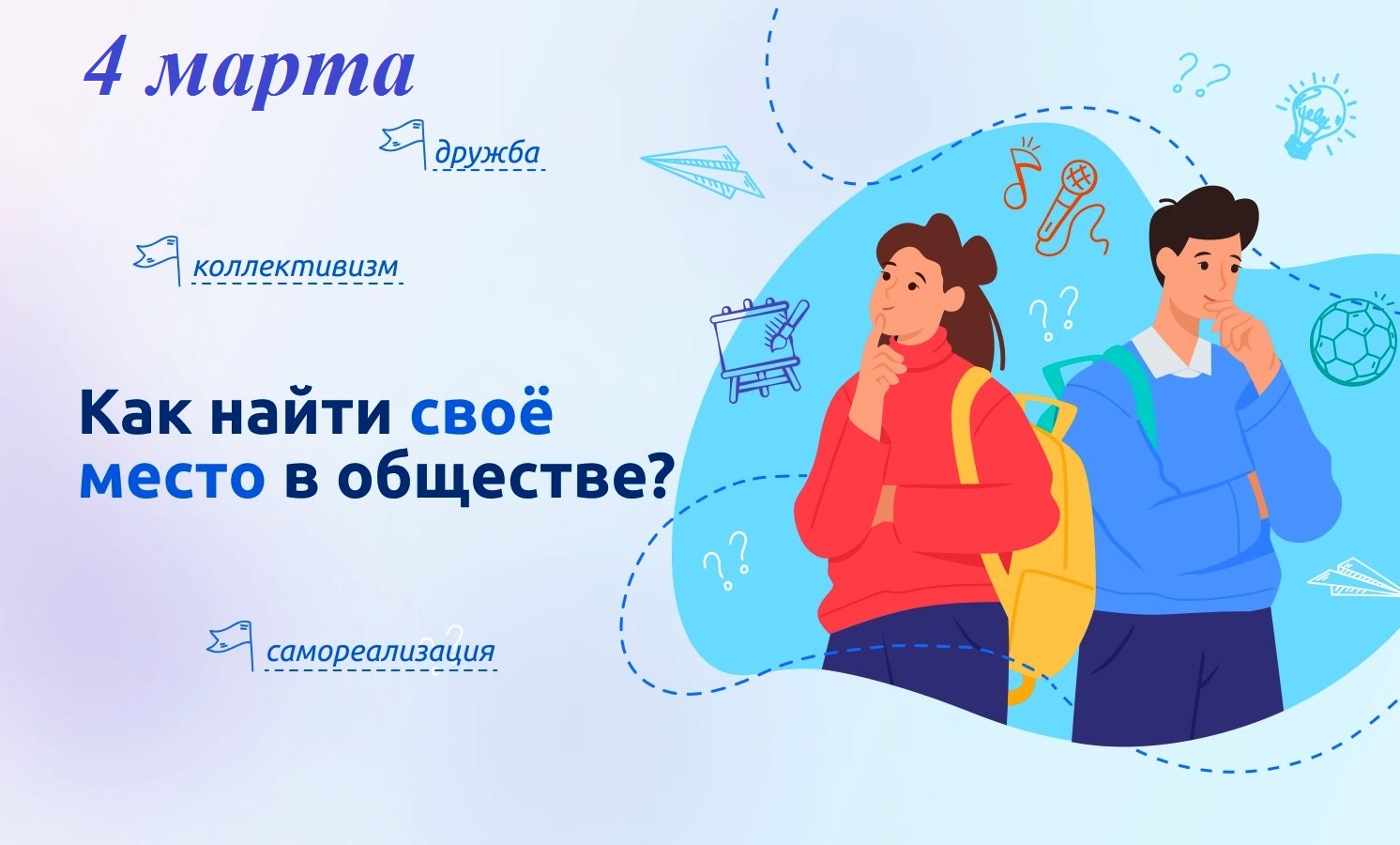 "Как найти своё место в обществе?" – это значит соответствовать его ценностям и традициям, любить то, чем занимаешься и приносить пользу людям, своей стране. Не сбиться с выбранного пути поможет вера в себя и в свои силы, поддержка близких людей – вашей семьи, друзей.