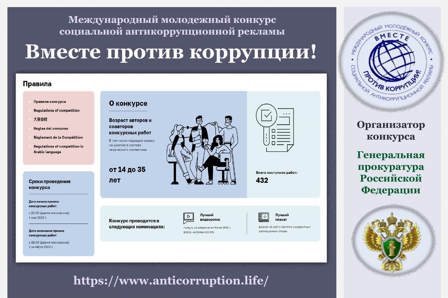 Международный молодежный конкурс социальной рекламы «Вместе против коррупции!» принимает заявки.